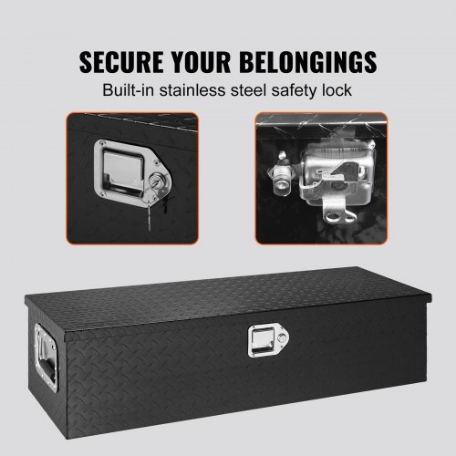 VEVOR Heavy Duty Aluminum Truck Bed Tool Box, Diamond Plate Tool Box with Side Handle and Lock Keys, Storage Tool Box Chest Box Organizer for Pickup, Truck Bed, RV, Trailer, 39"x13"x10", BlackHigh-quality Aluminum Tool BoxSpacious and ConvenientWaterproof DesignNo Chance of TheftEasy to CarryWidely UseWeight Capacity: 86 lbs/39 kg,Volume: 83 L,Item Model Number: JL-TB19-2,External Size: 39 x 13 x 10 inch(990 x 330 x 254 mm),Net Weight: 17.4 lbs/7.9 kg