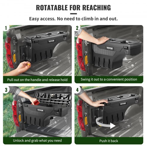 VEVOR Truck Bed Storage Box, Lockable Lid, Waterproof ABS Wheel Well Tool Box 6.6 Gal/20 L with Password Padlock, Compatible with Tundra 2007-2021, Driver Side, BlackGo Above and BeyondHermetically Sealed & Effective BarrierPerfect Storage SolutionInstall the BracketInstall the Storage BoxClasp onto Hinge PinsTest and AdjustmentCompatible with: Tundra 2007-2021 L,Max Load: 75 lbs/34 kg,Max Capacity: 6.6 Gal/25 L,Color: Black (matte),Product Weight: 11 lbs/5 kg (Net); 19.8 lbs/9.0 kg (Gross),Main Material: ABS & Carbon Steel,Package Size: 36.4x11x16.7 in/925x280x425 mm
