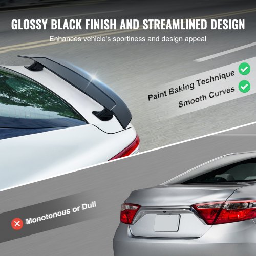 VEVOR GT Wing Car Spoiler, 46.3 inch Universal Spoiler, Compatible with most Sedans and Coupes, High Strength ABS Material, Car Rear Spoiler Wing, Racing Spoiler BGW/JDM Drift Glossy BlackWide CompatibilityRugged ABS MaterialEnhanced AestheticsImproved PerformanceInstallation TipsRed Reflective StripCompatible Car Model: Sedans, Coupes,Length: 46.3" / 1175 mm, ±0.5%,Color: Glossy Black,Item Model Number: AR-Universal-019,Surface Treatment: Baking Paint,Product Weight: 2.8 lbs / 1.25 kg, ± 3%,Material: ABS,Distance Between Brackets: 34.8" / 883 mm, ±0.4" / 10 mm,Product Size: 46.3" x 9.3" x 4.9" / 1175 x 235 x 125 mm