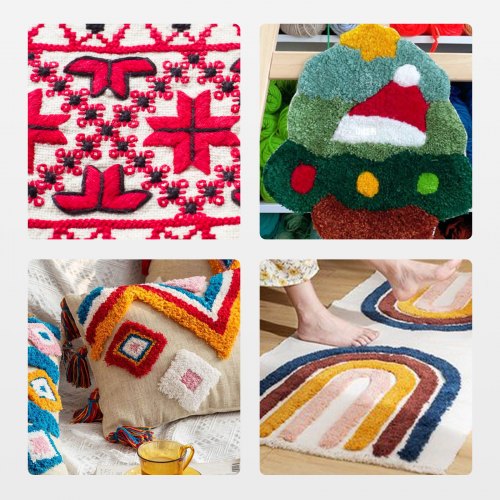 VEVOR Electric Carpet Tufting Machine Weaving Flocking Kit Cut Pile & Loop PileRotatable HandleAlignmentStart SwitchThis 70W knitting rug gun can reach 7-27 stitches per second and has a no-load speed of 10000r/min.The hand-tufting gun body is made of premium metal and featuring corrosion-resistant and durable.This rug maker kit contains many auxiliary accessories.Adjustable Speed: 3 Gears,Handle Length: 3.9 inch/ 100 mm,Speed: 7-27 Stitches/Sec,Item Size: 12.8 x 10 x 3.5 inch/ 325 x 255 x 90 mm,Adapter Size: 6.7 x 2.5 x 1.6 inch/ 170 mm x 65 mm x 40 mm,Voltage: 110V,Model: GR-3,Material: Metal + ABS,Cable Length: 80 inch/ 1.8 m,Carpet Height: 0.16-1 inch/ 4-25 mm,Power: 70W,Item Weight: 3.3 lbs/ 1.5 kg