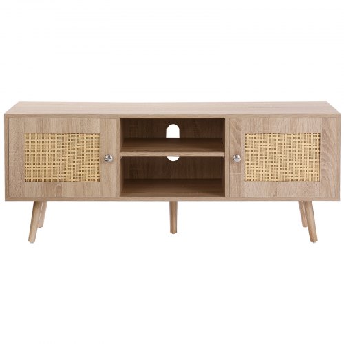 VEVOR Rattan TV Stand, Boho TV Cabinet for 55 inch TV, Mid Century Modern TV Stand, Rattan TV Console with Adjustable Shelfs for Living Room, Media Room, OakSpacious SurfaceAmple StorageConsiderate DesignFour Colors AvailableReliable QualityEffortless CleaningNumber of Layers: 3,Cabinet Internal Dimensions: 14.9×11.4×15.2in/379×290×387mm,Weight Capacity: 150 LBS,Cabinet Countertop Size: 47×16in,Color: Oak,Item Model Number: 10FJTRTVO10A,Support Leg Height: 6.3in/160mm,Product Weight: 48.4lbs/21.95kg,Applicable Maximum TV Size: 55in,Product Size: 47.2×15.8×19.3in/1200×400×490mm