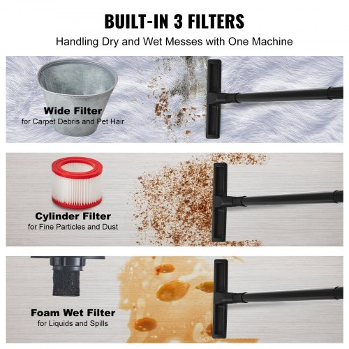 VEVOR Shop Vacuum Wet And Dry, 5 Gallon 6 Peak HP Wet/Dry Vac, Powerful Suction with Blower Function with Attachments 2-in-1 Crevice Nozzle, Small Shop Vac Perfect for Carpet Debris, Pet Hair, CarDust Collection Made Easy5 Gallon Dust BinUninterrupted CleaningMulti-Surface Application21.3ft Cleaning ReachBeginner-FriendlyNet Weight (Including All Accessories): 8.89 lbs / 4.03 kg,Main Materials: PP Shell, Aluminum Wire Motor,Suction Inlet Diameter: Φ1.26 in / Φ32 mm,Capacity: 5 gal / 18L ±13%,Input Power: 1200W,Item Model Number: YLW6342,Item Dimensions: 23.62 in x 15.75 in x 35.43 in / 600 mm x 400 mm x 900 mm,Vacuum Degree: 18 kPa,Input Voltage/Frequency: 120V 60Hz