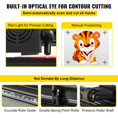 VEVOR Vinyl Cutter 53 Inch Vinyl Cutter Machine Semi-Automatic DIY Vinyl Printer Cutter Machine Manual Positioning Sign Cutting with Floor Stand Signmaster SoftwareSemi-Automatic GuidingLED Digital PanelThree Ports for You to ConnectAccurate CalibrationFlexible Floor StandExtensive UseMemory: 4 M,Cutter Pressure: 20 - 500 g,Cutting Speed: 20 - 800 mm/s,System: Windows XP / Vista / 7 / 8 / 10 (32& 64),Max Paper Feed: 53.1 in / 1350 mm,Cutting Accuracy: ± 0.0004 in / 0.01 mm,Language: DM / PL, HP / GL,Product Size (L x W x H): 61.02 x 19.69 x 43.31 in / 155 x 50 x 110 cm,Motherboard: ARM,Voltage: 110 V,Max Cutter Width: 49.6 in / 1260 mm,Software: Signmaster,Net Weight: 61.73 lbs / 28 kg,Interface: Serial Port & USB 2.0 & U-Disk