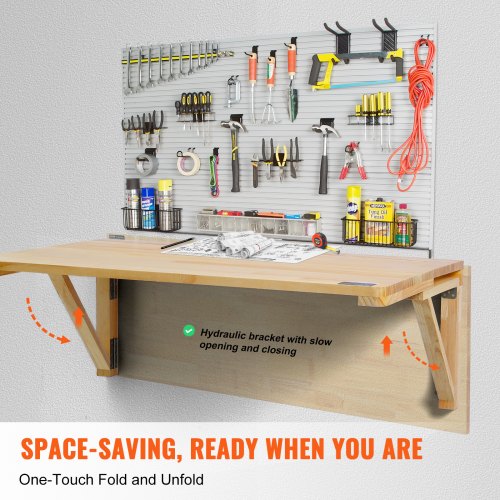 VEVOR Wall Mounted Folding Table, 31.5" x 23.62" Wall Mount Drop Leaf Table, Wooden Floating Desk with Iron Bracket, Fold Down Desk for Small Spaces, Home Office, Dining, Laundry Room, Kitchen, BarStylish and PracticalPremium and SafeSpacious TabletopSimple InstallationVersatile UseSafe Rounded CornersProduct Size (Unfolded): 31.50 x 23.62 x 11.73 in/800 x 600 x 298 mm,Load Capacity: 100 lbs/45 kg,Size: 31.50 x 23.62 in/800 x 600 mm,Item Model Number: PS-1,Product Weight: 12.3 lbs/5.6 kg,Material: Pine Wood,Board Thickness: 0.7 in/17.78 mm
