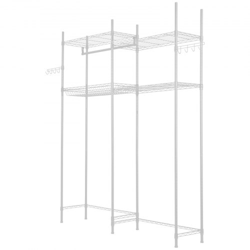 VEVOR Over The Washer and Dryer Storage Shelf, 4 Tier Laundry Room Drying Rack with Hanger Rod and Hooks, Adjustable Over Washer and Dryer Shelves, Laundry Room Shelf Storage Space Saver, WhiteIncrease Storage SpaceAdjustable Shelf HeightMulti-Function DesignStable and SecureDurable QualityFit Multiple SpacesTotal Width: 63.39 in / 1610 mm,Storage Layers: 4 layers,Single Cone 4 Hooks Capacity: 22 lbs / 10 kg each,Columns: 2 columns,Depth: 13.39 in / 340 mm,Total Height: 77.36 in / 1965 mm,Hanging Rod Capacity: 11 lbs / 5 kg each,Shelf Mesh Capacity: 44 lbs / 20 kg each,Item Model Number: SHSS8234196-4W,Maximum Load Capacity: 400 lbs / 181.44 kg,Working Load Capacity: 231.5 lbs / 105 kg,Net Weight: 25.64 lbs / 11.63 kg,Main Material: Carbon Steel,Washing Machine Size Fit: 29.92 in / 760 mm