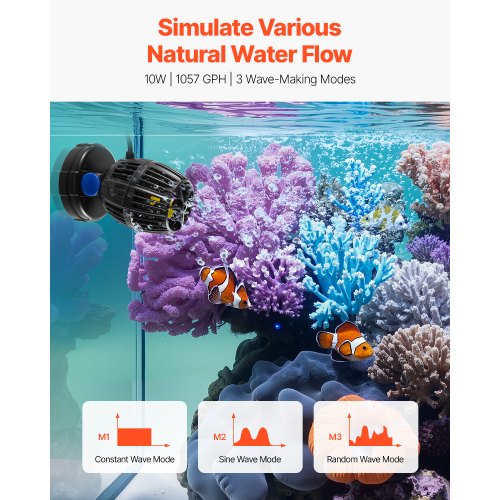 Aquarium Wave Maker with Controller 10W DC 24V Powerhead with Magnetic BaseCreate Natural Ocean CurrentsThree Wave ModesEasy ControlSimple InstallationWide CompatibilityQuiet DesignWave Frequency: Adjustable,Wave Modes: 3 Modes,Maximum Flow Rate: 1057 GPH,Product Dimensions: 6.69 x 6.10 x 3.54 in / 170 x 155 x 90 mm,Noise Level: ≤60 dB,Input: AC100-240V, 50/60Hz, 1.0A,Maximum Power: 10W,Recommended Tank Size: 33.0-90.6 gal / 50-70 cm,Output: DC24V 1.0A,Item Model Number: CW-110,Wave Flow Rate: Adjustable,Product Weight: 1.19 lbs / 0.54 kg,Main Material: ABS