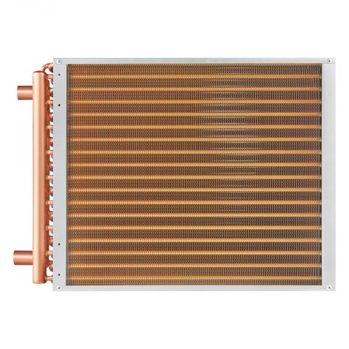VEVOR Heat Exchanger Water to Air, 18"x 20" with 3-Row 3/8" Copper Ports, 242 Aluminum Fins Heat Exchanger for Outdoor Wood Furnaces, Residential Heating and Cooling, and Forced Air HeatingThickened InterfaceHigh Efficiency and Energy SavingDual UseMultiple Sizes AvailableHigh CompatibilitySecure to UseOperating Temperature: -40°C-180°C / -40°F -356°F,Main Materials: Copper,Maximum Working Pressure: 2.5MPa,Plate Area: 18 x 20 in / 45.72 x 50.8 cm,Heat Capacity: ≥133K BTU,Number of Aluminum Fins: 242 Pcs,Color: Gold,Model: C18×20,Number of Copper Tubes: 3-Row 3/8",Product Dimensions (L x W x H): 25.59x18.03x3.62" / 650x458x92 mm,Net Weight (with Accessories): 17.64lb / 8kg