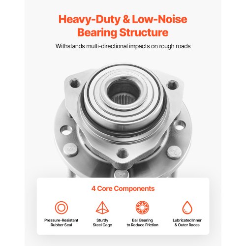 VEVOR Front Wheel Bearing & Hub Assembly Pair for 2004-2007 Buick 03-06 Chevy<br/>OEM Match<br/>Precise Fitment<br/>ABS Sensor<br/>Heavy-Duty Material<br/>Ball Bearing Design<br/>Easy Installation<br/>Item Model Number: 513188,Quantity: 2-Pack,Product Dimensions: 5.9 x 5.9 x 4.6 in/150 x 150 x 118 mm,Net Weight: 18.8 lbs/8.54 kg