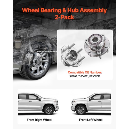VEVOR Front Wheel Bearing & Hub Assembly Pair for 2014-2016 Cadillac SRX 4-Door<br/>OEM Match<br/>Precise Fitment<br/>Strict Testing<br/>Heavy-Duty Material<br/>Ball Bearing Design<br/>Easy Installation<br/>Item Model Number: QAT-3926,Quantity: 2-Pack,Product Dimensions: 6.2 x 6.2 x 4.6 in/157 x 157 x 116 mm,Net Weight: 18.7 lbs/8.5 kg