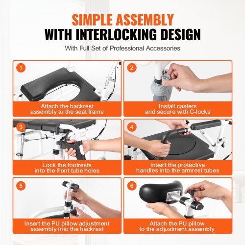 VEVOR Shower Wheelchair 17.5in Al Alloy Bathroom Wheelchair for Disabled AdultUnobstructed PassageEasy AccessFlexible OperationMultifunctional WheelchairSuitable for Various UsersSafe and DurablePrimary Material: Aluminum Alloy 6061 + PU,Headrest Length: 0.81 inch / 20.5 mm,Seat Width: 17.5 inch / 440 mm,Seat Dimensions (L x W x H): 17.32 x 16.93 x 1.70 inch / 440 x 430 x 43.3 mm,Load Capacity: 300 lbs / 136 kg,Backrest Size: 17.32 x 7.17 x 0.71 inch / 440 x 182 x 18 mm,Color: White+Black,Model: HFK-3331,Seat Cushion Size: 17.13 x 16.93 x 1.57 inch / 435 x 430 x 40 mm,Product Dimensions: 42.72 x 21.65 x 51.77 inch / 1085 x 550 x 1315 mm,Net Weight:33.69 lbs / 15.28kg