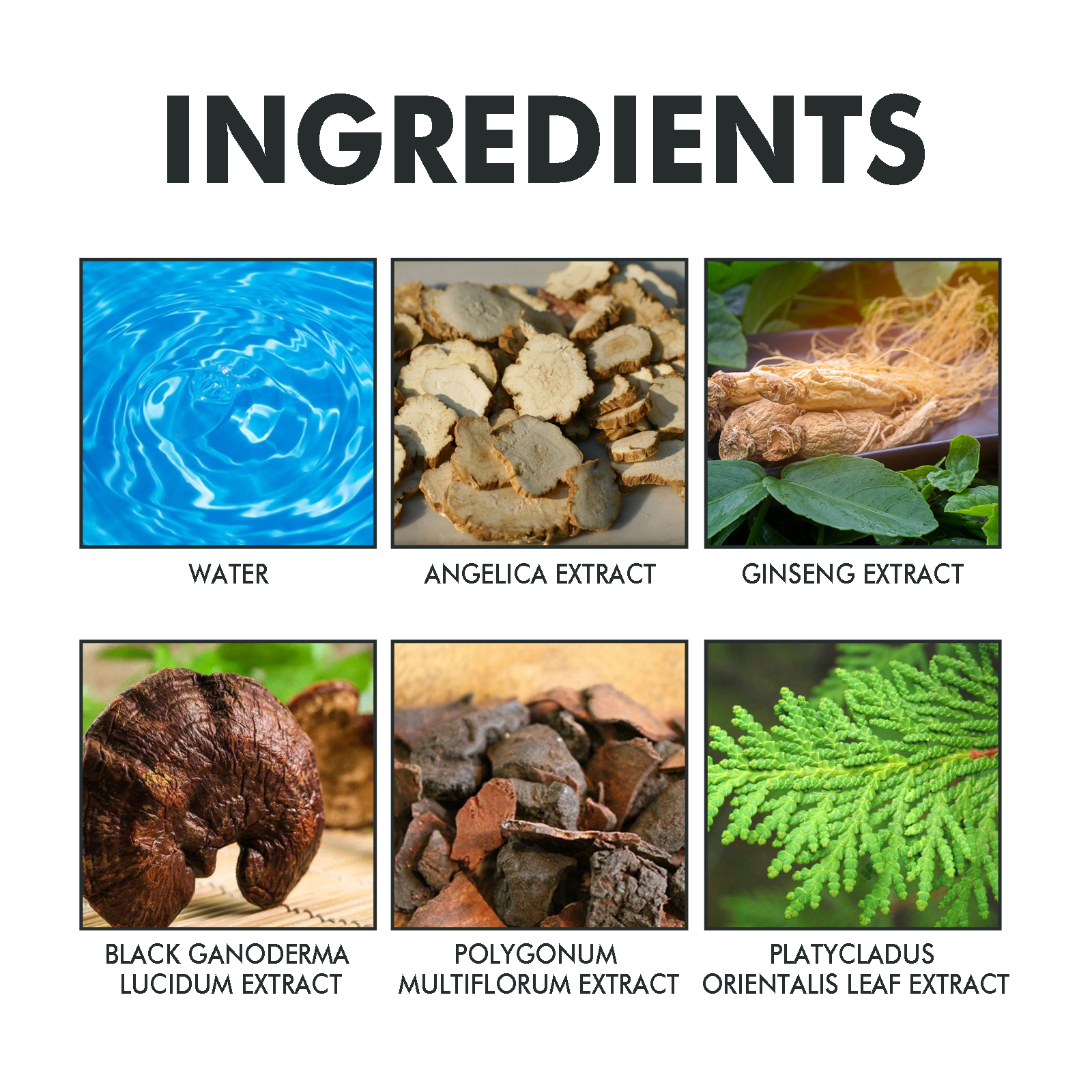 Our Hair Darkening Spray contains angelica extract, ginseng extract, black ganoderma lucidum extract. It can deeply penetrating into the scalp, activating the strength of hair roots and increasing tyrosinase activity, gently turn gray hair into black. Its use is very simple: Clean and dry the affected area. Press 1-2 pumps of spray and spray on the gray hair area. Gently massage your scalp and hair roots with your fingertips. Use it daily to get better results. Darkens gray hair and restores natural hair color, stimulates melanin production in hair follicles, soothes irritated scalp and promotes healthy hair growth, nourishes and strengthens hair, improve hair quality and thickness, make hair look healthier.