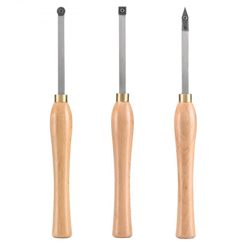 VEVOR Wood Lathe Chisel Set, 3 PCS Woodworking Turning Tools, Includes Square, Round, Diamond Carbide Blades, 7.87" Comfortable Grip Handles, Wood Chisel Set with Wooden Box For Turning Pens or SmallDurable ConstructionSharp and Precise CuttingIncluded Storage BoxErgonomic Handle DesignVersatile ApplicationsLong-Lasting QualityHandle Length: 7.87 inch / 200 mm,Total Length: 12.6 inch / 320 mm,Item Model Number: WD350-3,Material: Wood, 45#, OKE305,Product Dimensions: 13.78 x 4.72 x 1.57 inch / 350 x 120 x 40 mm,Net Weight: 1.87 lbs / 0.85 kg