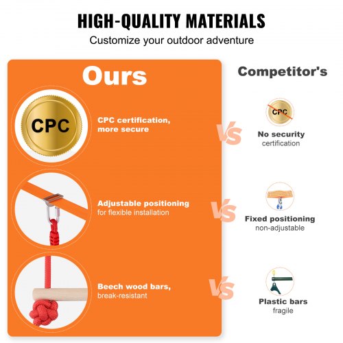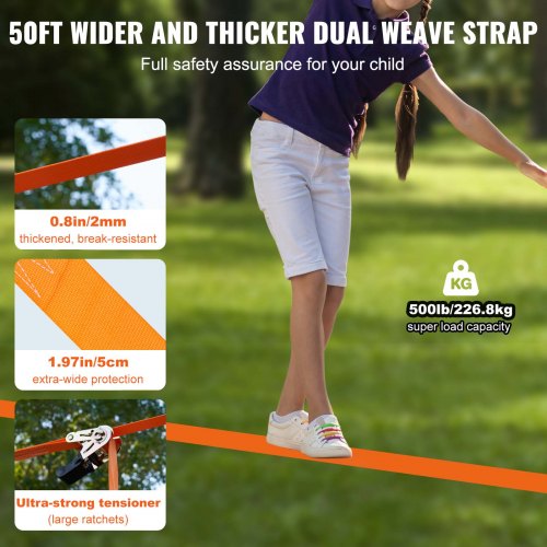 VEVOR Ninja Warrior Obstacle Course for Kids, 50 ft Weatherproof Slacklines, 500lbs Weight Capacity Monkey Line, Outdoor Playset Equipment, Backyard Toys Training Equipment Set with 10 ObstaclesDiverse Usage ScenariosVersatile GameplayStrong Load-bearing CapacitySafe to UseProtecting NatureDurable QualityStrap Color: Orange,Load Capacity: 500 lbs / 226.8 kg,Tree Protector Length: 59 inch / 1.5 m,Item Model Number: PR-010-50,Product Weight: 19.3 lbs / 8.75 kg,Strap Length: 50 ft / 15.24 m,Strap Thickness: 0.8 inch / 2 mm