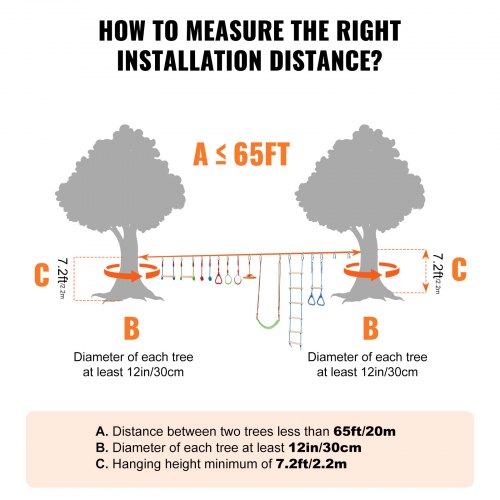 VEVOR Ninja Warrior Obstacle Course for Kids, 2 x 65 ft Weatherproof Slacklines, 500lbs Weight Capacity Monkey Line, Outdoor Playset Equipment, Backyard Toys Training Equipment Set with 12 ObstaclesDiverse Usage ScenariosVersatile GameplayStrong Load-bearing CapacitySafe to UseProtecting NatureDurable QualityStrap Color: Orange,Load Capacity: 500 lbs / 226.8 kg,Tree Protector Length: 59 inch / 1.5 m,Item Model Number: PR-012-65,Product Weight: 28.54 lbs / 12.95 kg,Strap Length: 65 ft /19.8 m,Strap Thickness: 0.8 inch / 2 mm